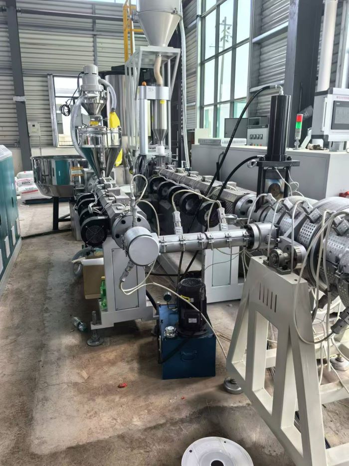 Para a linha de produção de tubos de polietileno, a matéria -prima é PE. Temos aspirador de aspirador e secador de tremonha para garantir a matéria -prima com o melhor desempenho e seco da umidade. Para a linha de extrusão de tubo de polietileno, escolhemos a extrusora 65/33 55kW, garantindo a saída de 250-300kg/h. O molde é de 40cr com calibradores de cobre. O tanque de vácuo tem 9 metros de comprimento e o tanque de resfriamento de pulverização também tem 9 metros de comprimento. O comprimento do vácuo e do tanque de resfriamento garante resfriamento suficiente para o tubo HDPE produzido. Utilizamos bocais de melhor qualidade e tanque de aço inoxidável. O cortador de serra possui motor servo e hidralico para encurtar o círculo de trabalho do cortador. Fornecemos três engenheiros que comunica e treinamento no local e pós -venda ao longo da vida. Se você estiver interessado na linha de extrusão de tubo de polietileno, entre em contato comigo para obter mais informações!