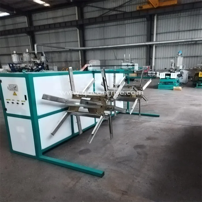 A unidade de formação de extrusora de tubo ondulada consiste em uma série de moldes ou formando blocos de molde que moldam o material de Melton no padrão ondulado desejado, quando sai da cabeça da matriz.