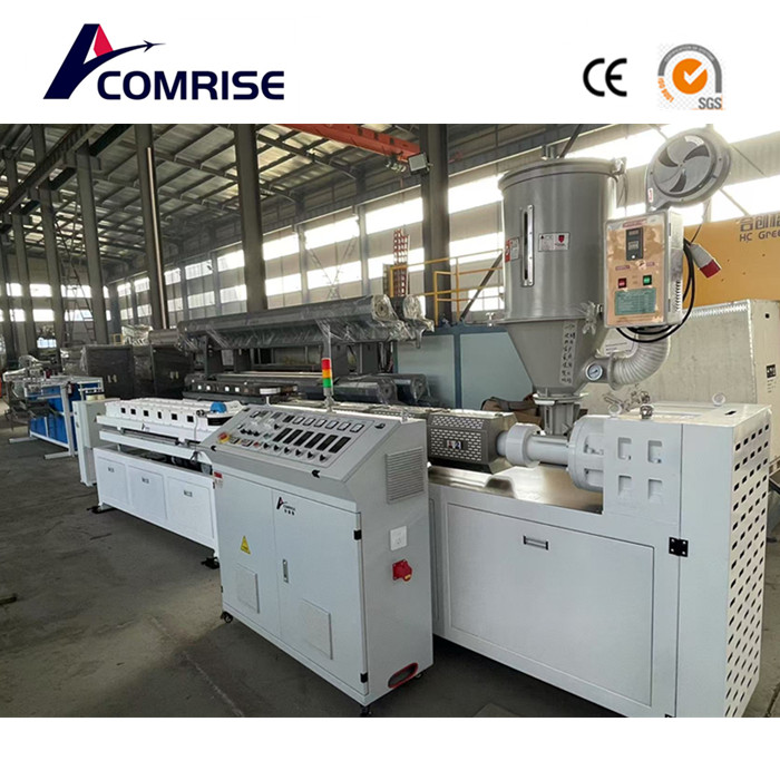 4. Inclui principalmente: alimentador automático de secagem a vácuo, extrusora de parafuso único, cabeça de matriz, barra de núcleo e molde de boca, máquina de formação de tubos, enrolador.
